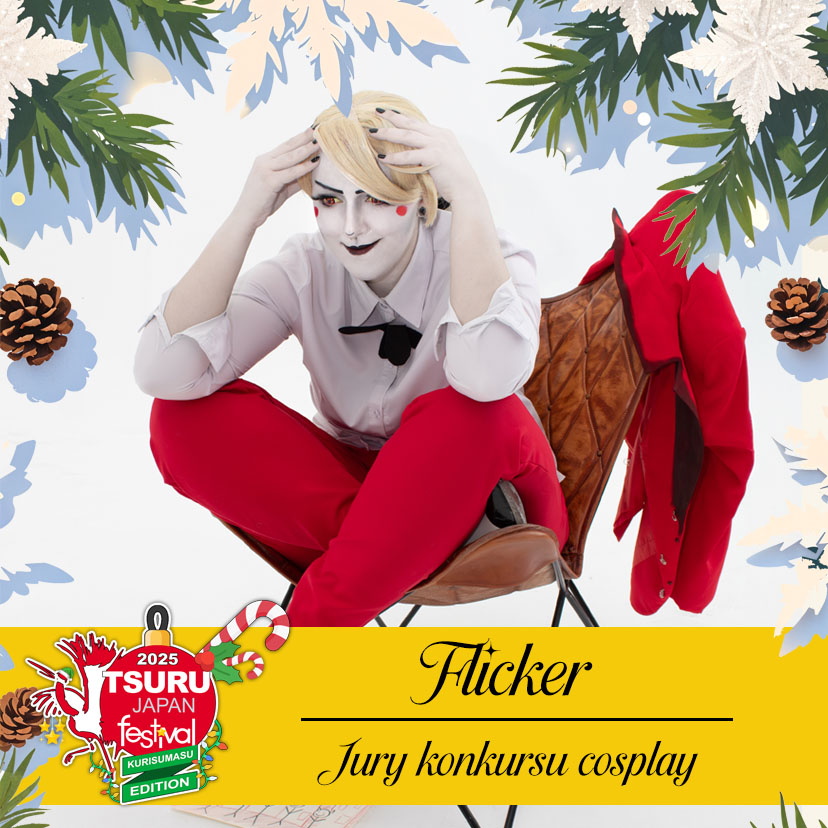 „Hej! Jestem Flicker i tworzę cosplay od 2018 roku. Często występuję na scenie cosplayowej, zdobywając liczne wyróżnienia, w tym Grand Prix na Aiconie, nagrodę za najlepszą charakteryzację oraz występ na Hikari. Specjalizuję się w stylizacji peruk i uwielbiam sceniczne szaleństwa. Nie mogę się doczekać, aby zobaczyć Wasze wspaniałe stroje i występy!”